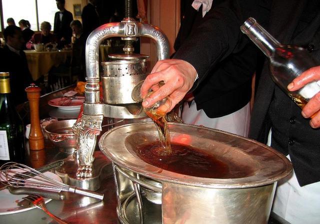 如果说油封鸭是法国鸭菜的一道接地气的菜,那血鸭/榨鸭(Canard à la Presse)堪称法式鸭菜的“巅峰之作”。