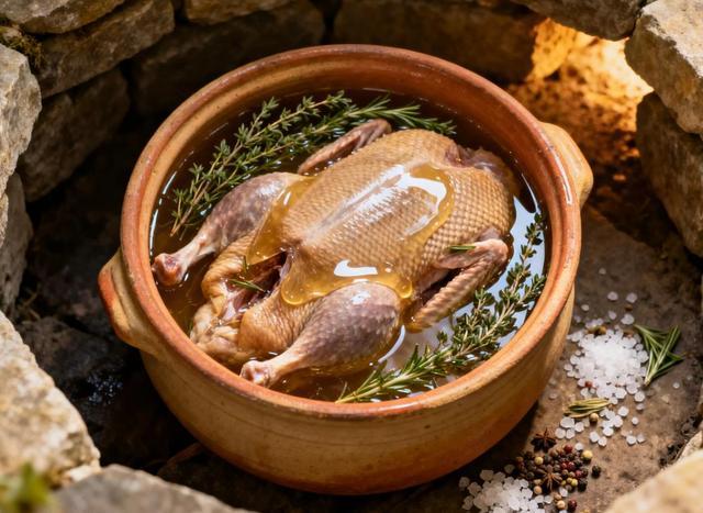 那么配资开户查询网,如果鸭肝被取用了后,剩下的鸭肉怎么办呢?很多年前,法国西南部加斯科涅地区的农民也遇到了这个问题。他们很快想到了一个巧妙的保存办法——先用盐和百里香等香料腌制长达36小时,再将鸭肉完全浸没在鸭油中,以90度左右的低温慢煮数小时,最后封存在陶罐里,置于地窖阴凉处。